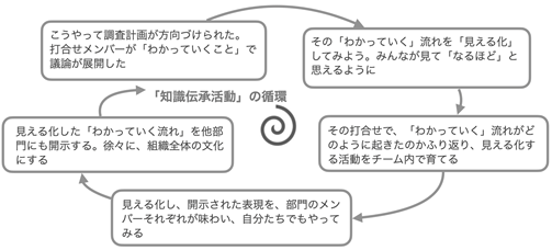 伊集院:一番の成果は,現場の人たちが日々の業務をふり返り,自分たちの「わかっていく」流れを見出す機会をつくり出すことで知識伝承活動を循環させようというグランドデザインのビジョンと思います(図1).