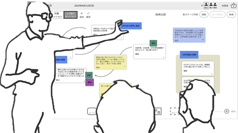 小早川:デザインチームがとっている方法は「描く」こと(須永ほか 2025)なのですが,この方法はデザインチームだけのものではないということに今回気付かされました.鎌田さん,ホワイトボードに絵を描いてくれた時がありましたよね.私としては,おお,鎌田さんも描いた!みたいな感じで嬉しかったです.