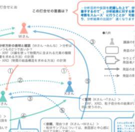鎌田:そういうデザインの分野があるのかと,最初は驚きました.僕らの分野(材料・物性研究)とは随分と異なるので,最初はプロジェクトをどう進めるのか見当もつきませんでした.その後,「まずは現場を見させてほしい.関係者の話を聞きたい.」というリクエストをもらい,実際にその活動に立ち会うなかで,その分野が人や現場の活動を重視するということが理解できたんです.で,ツールを開発するだけでなく「現場の仕組み全体」がデザインの対象になるということで,この共同研究の課題のひとつを「知識伝承活動のグランドデザイン」としました.